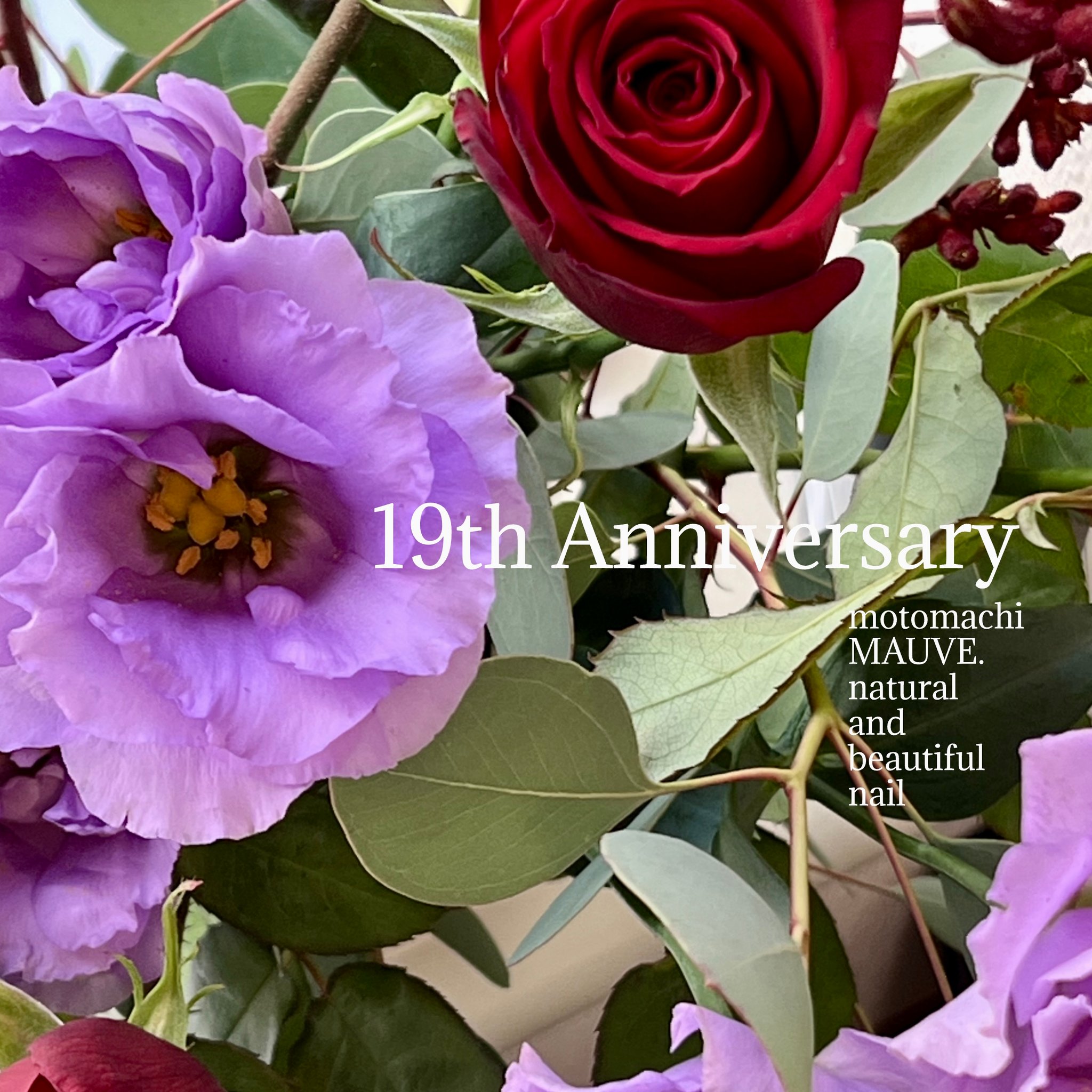 いつもMAUVE.をご利用いただきありがとうございます! おかげ様で本日19周年を迎えました☆ 気持よく晴れた空の中、例年通り朝一番でサロンの氏神様である厳島神社を参拝。 フット&ハンドのM様を終えて、石川町の花こさんへお花を買いに行きました。 サロンへの感謝を込めて...