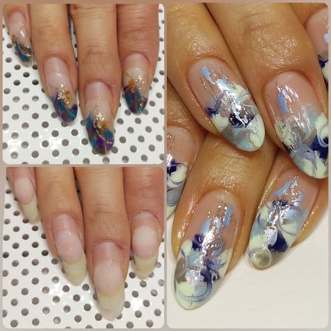 サロンでジェルを付け続ける場合 ①現在付いているジェルをオフ(アセトンという溶剤で完全に除去)して新しく付け直す。 ②マシン等でトップジェルやデザイン、カラージェル等を削って除去し 現在付いているベースジェルだけを残した上で、伸びている根元の自爪部分から先端まで新たにベースジェルで覆い新しいデザイン等を施す。...