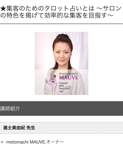 本日、ネイル商材のお取引業者さんであるTAT様の経営系セミナー枠にて オンライセミナーを開催させていただきました。 タイトルは画像の通り、集客にタロットを絡めた経緯と体験談をお話しさせていただきました。 ご提案をいただいたのは7月。 思いがけないことで一瞬躊躇しましたが、ありがたくお受けすることにしました。 漠然としたイメージを抱きつつ...