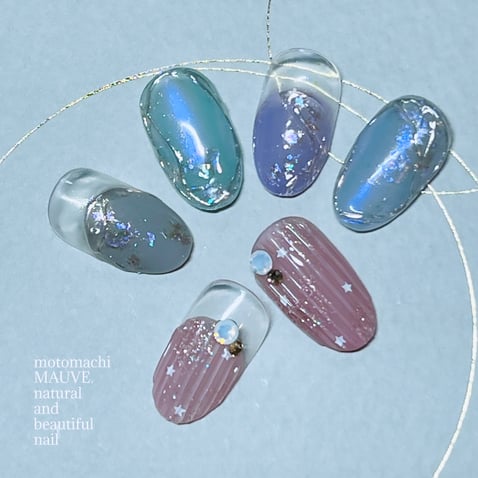 なかなか梅雨明けしませんね。 そんな中、夏ネイルのご提案です。 最近数種類のミックスラメを入れたので、ラインストーンや寒色系のカラージェルと合わせてみました。 ミラーネイルは大人の女性が抵抗感無く楽しめるようにピンクゴールドをお勧めしています。 一面ミラーも可愛いですが、部分的に凹凸をつけたデザインもステキです♡...