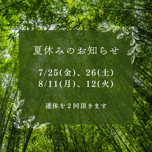 夏休みのお知らせ