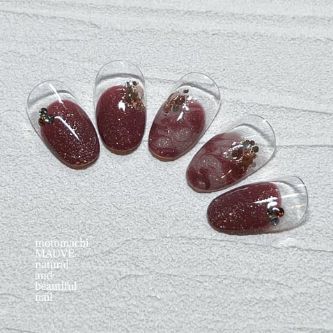 昨日今日と暑い一日でしたね。 横浜は今夜から雨の予報です。 冬の到来まで天候ももう少し不安定な日が続きそうです。 今回も新作デザインの投稿です。 大好きなパール入り赤紫をムーンフレンチに。 2本だけマーブルにしました。 アクセントに使用したラメは「ロゼシャンパン」というカラーのミックスラメです。...